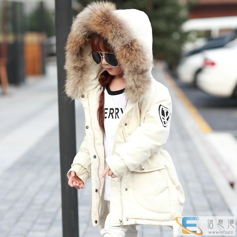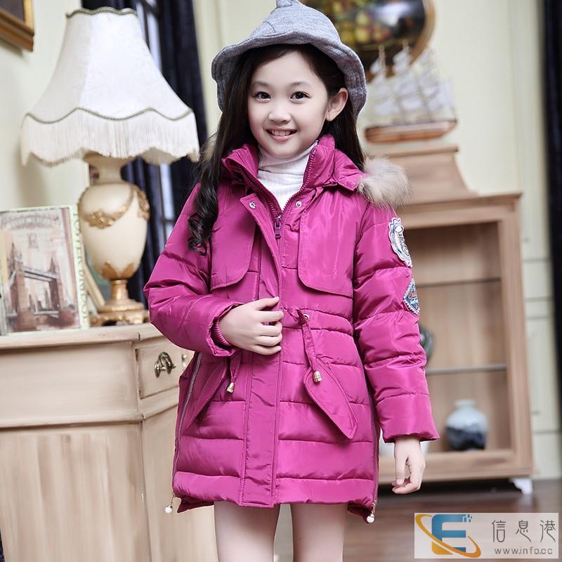 马卡乐童装羽绒服中长款加厚新款中小童女宝宝冬装连帽外套